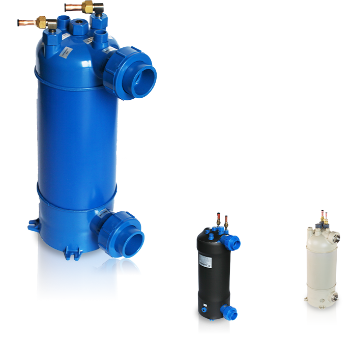 鑫雷產品涵蓋高效盤管殼式換熱器、鈦管換熱器、套管換熱器、雙壁管換熱器等,廣泛應用于商用空調、制冷設備、熱泵熱水機、泳池調溫設備、海鮮池恒溫機。
